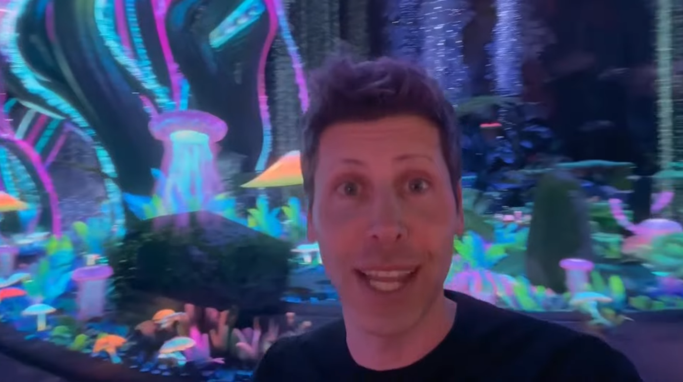 소라2 홍보 영상의 한 장면. AI로 만들어진 가상의 샘 올트먼의 ‘카메오’가 우리를 생성형 콘텐츠의 세계로 안내한다.