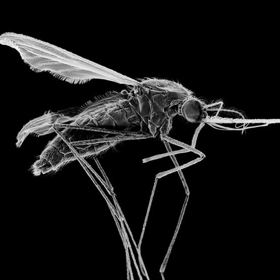 인도를 비롯한 아시아 지역에서 말라리아를 퍼뜨리는 아노펠레스 스테펜시(Anopheles stephensi) 모기의 모습