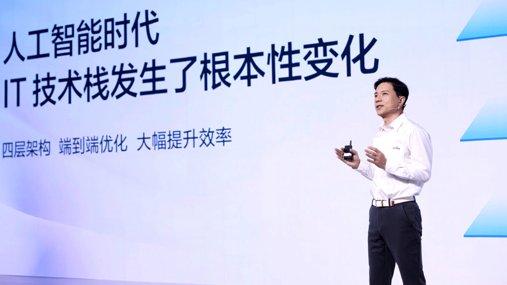 바이두의 CEO 리옌훙이 무대에서 어니봇 데모를 진행하고 있다. 사진 BAIDU