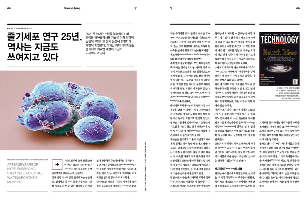 MIT 테크놀로지 리뷰 코리아 Vol.11 / 2023년 11·12월호 < Defy Aging: 노화를 거스르는 기술 혁명>편 Reverse Aging 생명 연장의 꿈은 실현된다 - 7p 줄기세포 연구 25년, 역사는 지금도 쓰여지고 있다 - 8p 다시 젊어지는 ‘회춘 기술’을 주목하는 이유 - 14p 노화 지표로 남은 수명 측정한다 - 17p 역노화로 특정 장기의 기능 회복과 질병 치료 가능해진다 - 19p 10년 안에 노화를 거꾸로 되돌리는 시대 도래한다 - 23p 수명 연장 약물을 사용하기 위한 새로운 국가 건설 계획 - 27p 불멸의 배아 줄기세포가 가진 의학적인 잠재력 - 32p 새 유전체 지도, 인류의 모든 유전적 변이를 담다 - 34p 실험적 치료 대상은 누가 정해야 할까? - 36p 줄기세포로 만든 도파민생성세포를 뇌에 이식한 한 생명공학회사 - 45p New AI AI 전쟁 시대의 윤리적 문제 - 48p 서로 다른 정치적 편향을 가진 AI 언어모델들 - 56p AI 감정인식 기술을 규제하는 이유 - 60p 결함 있는 테스트로 부풀려진 대형 언어모델 - 62p 워터마크의 한계, AI 생성 콘텐츠 표시 방법이 충분치 않은 이유 - 67p 구글 딥마인드, AI 생성 이미지 워터마크 도구 출시 - 70p 인공지능 비전 시스템의 편향을 완화하는 새로운 도구의 등장 - 72p 챗GPT 등 AI, 창의력 시험서 인간 능가했다 - 74p AI로부터 이미지를 보호해 주는 도구들 - 76p 앤드류 응 교수 기고: 어떻게 하면 혁신가가 되는가 - 78p 자녀에게 가르쳐야 할 AI 활용 원칙 6가지 - 82p Human & Technology 시각장애인의 ‘이미지 빈곤’을 극복하기 위한 촉각 그래픽 기술 - 86p 정식 출시된 월드코인을 둘러싼 논란 - 96p 중국 디지털 화폐, 국제화를 꿈꾸다 - 98p Computing 오픈소스의 미래는 여전히 유동적이다 - 102p Smart City 과열되는 중국의 자율주행 기술 경쟁 - 109p Energy CATL의 새 배터리는 전기차 충전 속도를 높일 수 있을까 - 113p Space 달 탐사의 미래 - 116p 아르테미스 프로젝트의 종착지는 화성, 달 탐사 난항 극복이 먼저다 - 118p 우주 비행사가 내쉬는 숨, 미래 우주 식품의 원료가 될 수 있다 - 122p 앞으로 천 년 동안은 소행성의 지구 충돌 우려에서 벗어날 수 있다 - 126p Bio 올가을 코로나 재유행? 신형 백신 효과 알아보니 - 128p ‘엠폭스’라는 또 다른 위기가 중국을 덮치다 - 130p 유전자 조작 마이크로바이옴으로 건강 지킨다 - 134p Climate Change 150만 년 전 과거의 비밀을 품고 있는 빙하 코어 - 136p 습지 복원해 가라앉는 베네치아 살린다 - 138p News - 140p