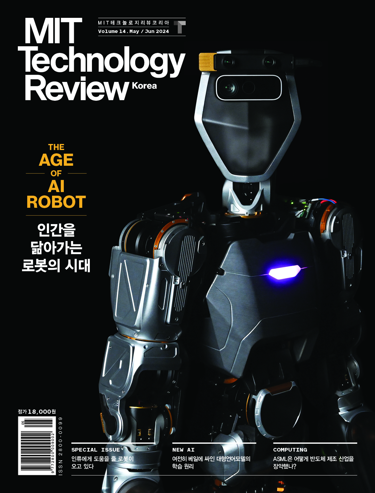 - 제목: MIT 테크놀로지 리뷰 코리아 Vol. 14 (2024년 5·6월호) - 부제: 인간을 닮아가는 로봇의 시대 - 출판사: 디엠케이글로벌 - 저자: MIT 테크놀로지 리뷰 편집팀 - 발행일: 2024년 5월 1일 - 패키지: 무선, 210x297mm, 140쪽 - 간별: 격월간