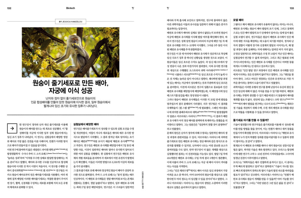 뇌의 생물학적 나이가 평균보다 많게 나왔다면? – 128p 유전자 조작으로 식물의 공기 정화 능력을 개선하다 – 130p 원숭이 줄기세포로 만든 배아, 자궁에 이식 성공 – 132p 이제 줄기세포로 배아를 만든다. 과학은 어디까지 진보해야 할까? 134p