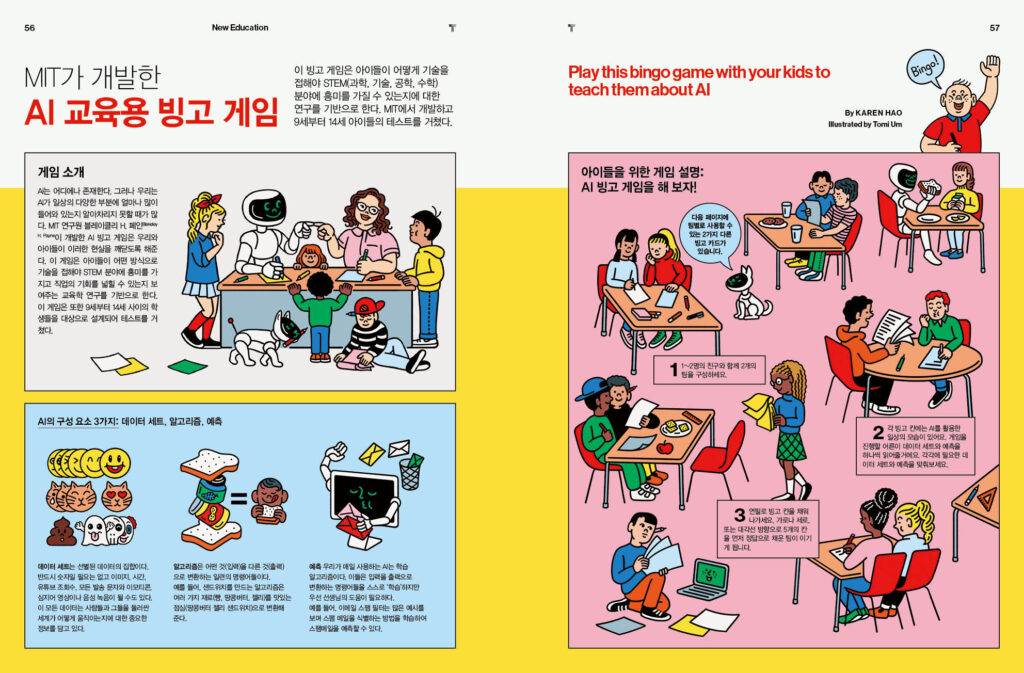챗GPT 시대의 교육, 파괴가 아닌 혁신을 향하다 – 12p AI가 인문학 연구를 변화시키고 있다 – 18p 덴마크 교사는 앱으로 학생들의 기분을 확인한다 – 26p ‘코딩 교육’의 역사 – 34p 중국이 시작한 AI 교육 실험, 전 세계를 바꿀 수 있을까? – 44p 디지털 문해력의 시대에 아이들을 가르치는 방법 – 50p MIT가 개발한 AI 빙고 게임 – 56p 모두를 위한 AI 교육을 꿈꾸는 교육계 – 60p