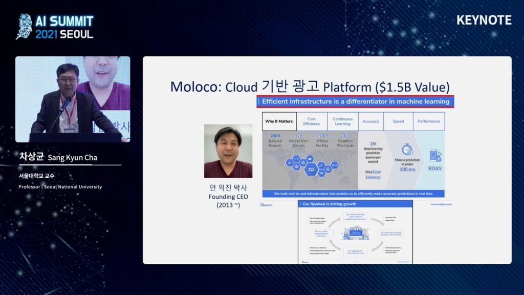 차 원장은 이어 “우리도 투자를 받는 세계적인 유니콘(기업 가치가 10억 달러 이상인 스타트업)을 못 만들 이유가 없다”면서, 안익진 박사가 세운 클라우드 기반 광고 플랫폼 몰로코(Moloco)를 대표적인 사례로 들었다.