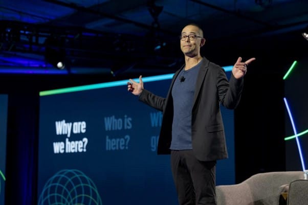 시애틀에서 열린 회사의 서밋에서 연설하고 있는 브레이크스루에너지의 전무이사 로디 가이데로(Rodi Guidero)