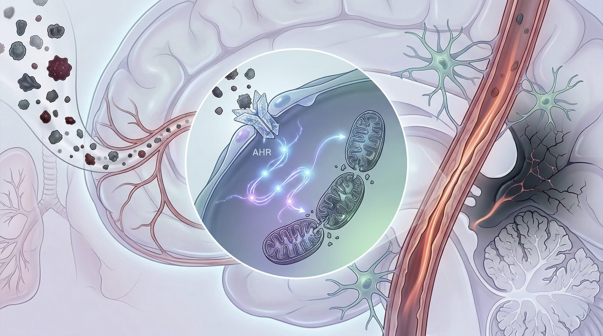 AHR이 활성화되면 세포 내 에너지 공장인 ‘미토콘드리아(Mitochondria)’의 기능이 저하된다. 미토콘드리아는 세포가 활동하는 데 필요한 에너지(ATP)를 만드는 기관으로, 이 기능이 떨어지면 뇌혈관 내피세포는 혈관의 수축과 이완을 조절하는 능력을 잃게 된다. 그 결과 혈관이 수축된 상태로 굳어지면서 뇌로 공급되는 혈류량이 줄어든다.
