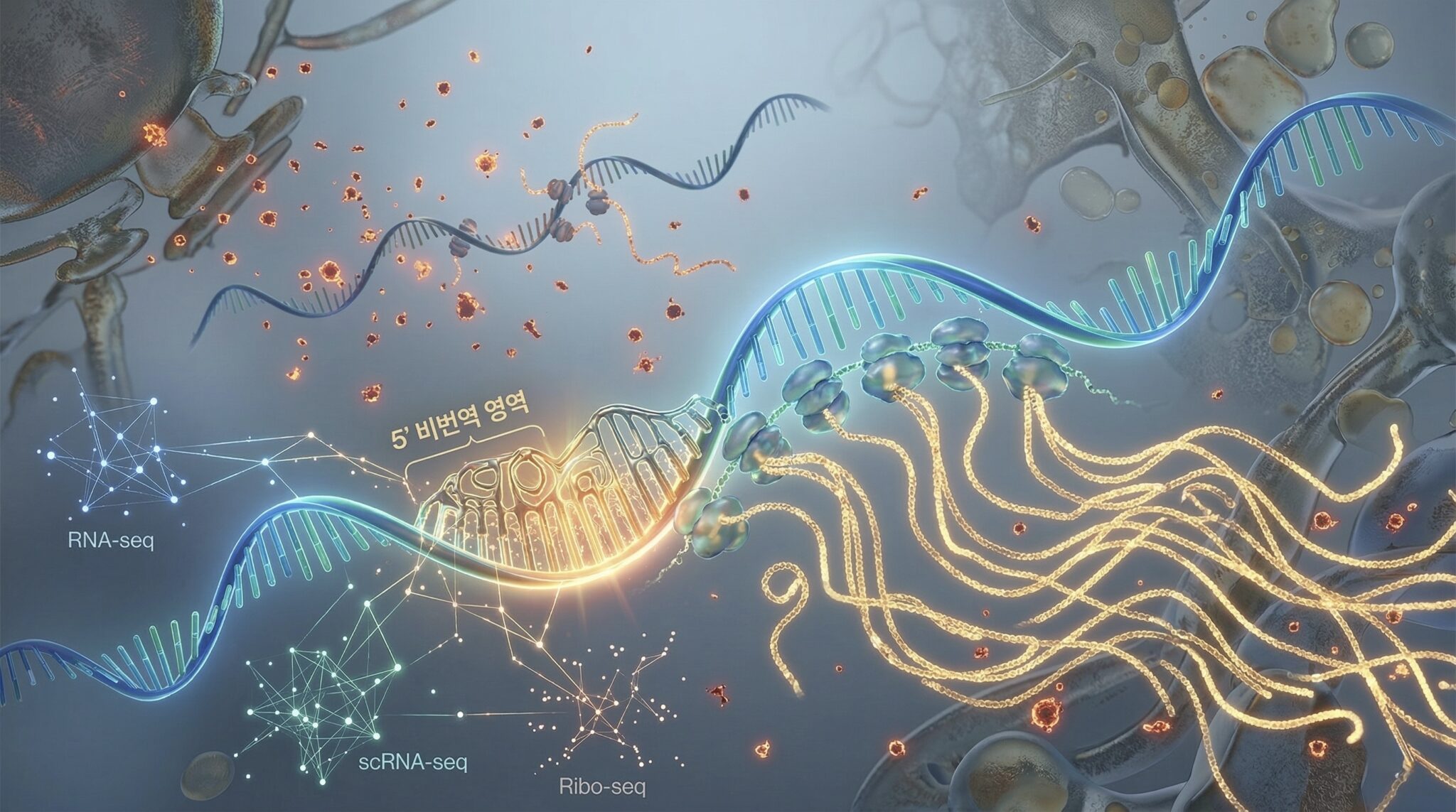 연구팀은 여러 조직과 세포 환경에서 단백질 생산 능력이 뛰어난 5′UTR 서열을 찾기 위해 대규모 바이오 데이터를 통합 분석했다. 유전자 활성도를 분석하는 대규모 조직 전사체 분석(RNA-seq), 개별 세포 수준의 유전자 발현을 확인하는 단일세포 전사체 분석(scRNA-seq), 실제 단백질 생성 효율을 측정하는 리보솜 프로파일링(Ribo-seq) 등 다양한 분석 기법이 활용됐다. 사람과 마우스 유래 데이터를 함께 분석함으로써 종(種) 및 모델 차이에 따른 편향을 최소화했다.