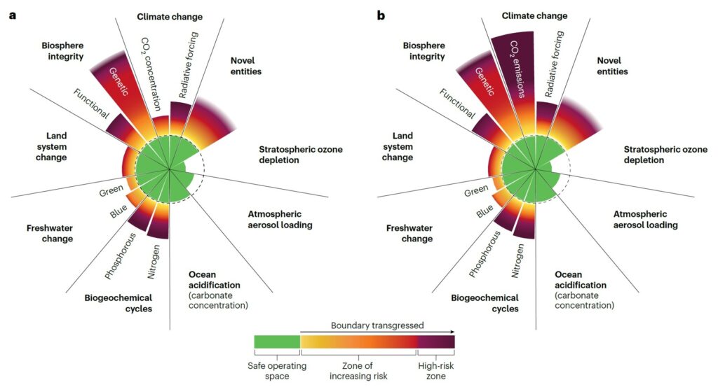 지구는 인간의 활동으로 인한 오염과 파괴를 어느 정도까지는 스스로 흡수하고 회복할 수 있다. 하지만 그 한계를 넘어서면 기후와 생태계가 돌이키기 어려운 방향으로 변하기 시작한다. 과학자들은 이 한계선을 ‘플래니터리 바운더리(Planetary Boundaries, 지구 행성의 한계)’라는 개념으로 정량화해 왔다. 온도 상승, 생물 다양성 손실, 질소·인 오염, 담수 변화 등 9가지 지구 시스템 영역에 대해 인류가 넘지 말아야 할 안전 작동 범위를 수치로 제시하는 프레임워크다.