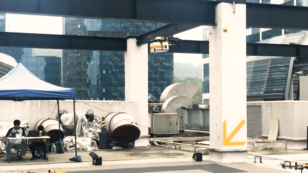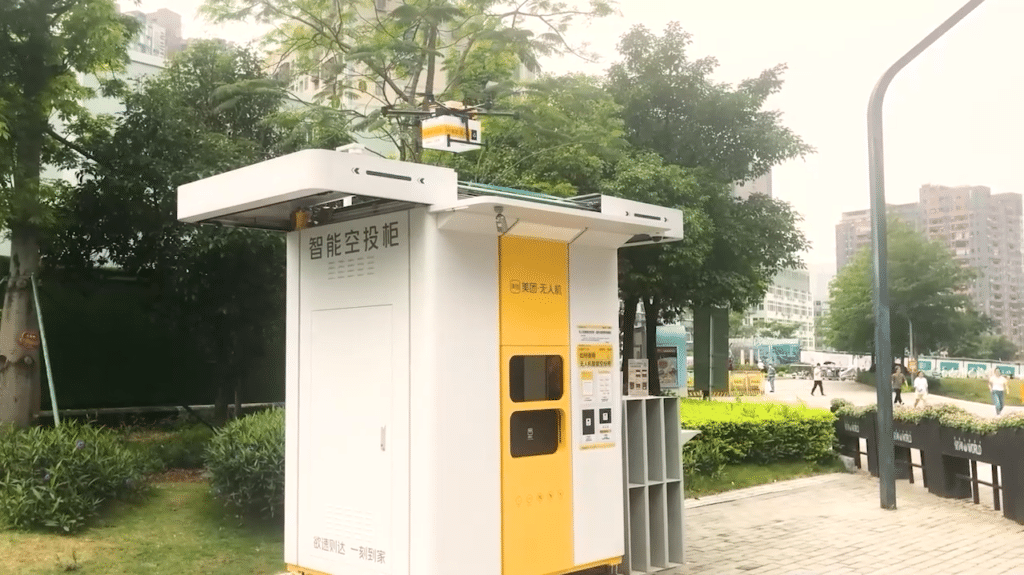 고층 빌딩이 겹겹이 들어선 중국 선전(深圳, Shenzhen)의 중심가. 검은색 날개에 노란색 몸체를 가진 드론이 길가의 픽업 키오스크로 내려오고 있었다. 드론이 착륙할 수 있도록 자판기 크기의 키오스크 윗부분이 열렸고, 키오스크 안에는 음료가 담긴 흰색 종이상자가 놓여 있었다. 필자가 30분 전 앱으로 주문했을 때 안내받은 도착 예정 시간인 오후 2시 3분에 정확히 음료가 도착했다.