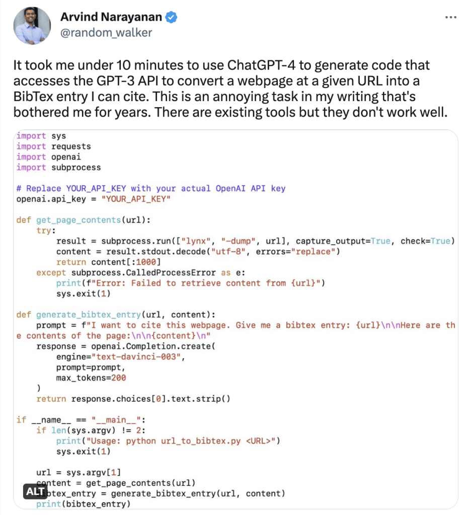 최근 인기를 끌고 있는 챗GPT를 일반 대중이 자유롭게 이용할 수 있는 것과 달리, 현재 GPT-4는 개발자만이 이용할 수 있다. [*편집자 주: 현재 챗GPT의 유료 멤버십인 챗GPT 플러스를 통해 이용할 수 있다] 아직 출시 초기인 만큼 GPT-4가 새 제품과 서비스에 적용되기까지는 시간이 다소 걸릴 테지만, 이미 많은 사람들이 GPT-4의 역량을 공개적으로 시험해 보고 있다. 재미있는 사례를 몇 가지 소개한다.