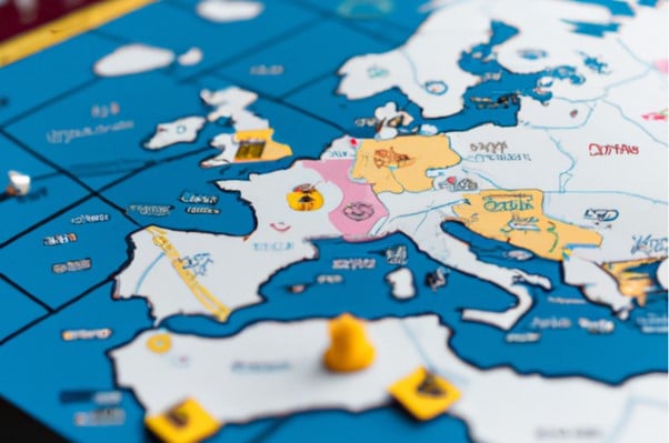이미지 생성 AI ‘달리2(DALL.E 2)’에 ‘보드게임에서 유럽을 정복하는 AI’라는 명령어를 입력한 것.