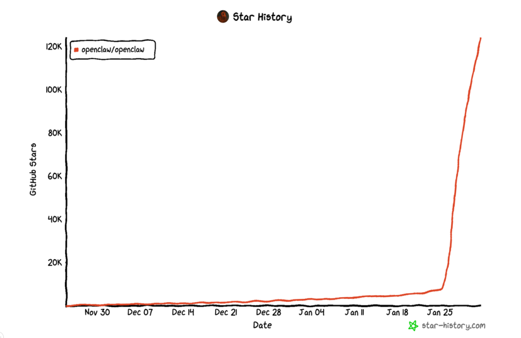 개발자 피터 슈타인버거(Peter Steinberger)는 13년간 소프트웨어 회사를 운영하며 일에 매진하다 회사를 매각하고 은퇴를 선언했다. 하지만 급격히 진화하는 AI 기술에 매료되어 다시금 개발에 뛰어들었다. 그가 오픈소스로 공개한 Clawdbot은 공개 직후 한동안 완만한 성장세를 보였다. 그러다 2026년 1월 중순, 기술 커뮤니티 Hacker News의 프론트 페이지에 노출되고 IT 업계 주요 인플루언서들의 추천을 받으며 전환점을 맞았다. 각종 소셜 미디어에서 빠르게 확산된 Clawdbot은 전 세계 얼리어답터들의 관심을 끌었다. 단 10일 만에 GitHub 스타 10만 개를 돌파했으며, AI 에이전트 분야 오픈소스 프로젝트 가운데 최고 수준의 성장률을 기록하고 있다.