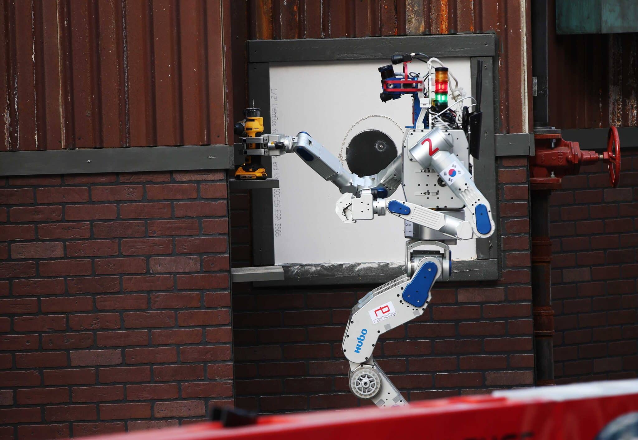 2015년 열린 재난로봇경진대회Darpa Robotics Challenge에서 활약중인 한국형 휴머노이드로봇 휴보의 모습_사진: KAIST