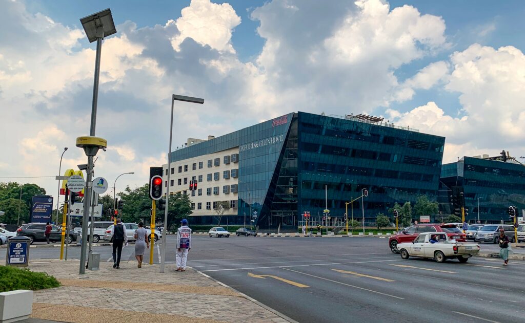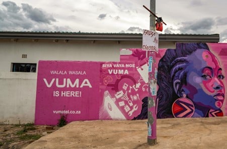 빌라카지 거리 근처에 ‘부마(Vuma)’ 광통신의 서비스 개시를 알리는 옥외 광고가 설치되어 있다.