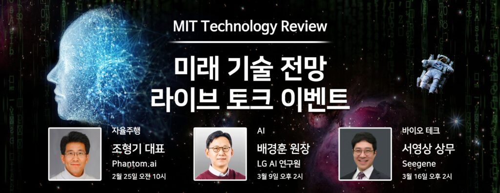 MIT 테크놀로지 리뷰 라이브 토크 이벤트는 모두 3회에 걸쳐 진행됩니다.
