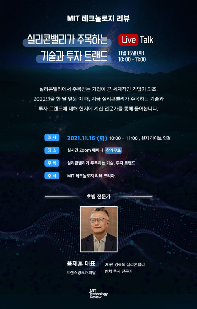 MIT 테크놀러지 리뷰 미래 기술 라이브 세미나에 많은 참여 부탁드립니다! ​