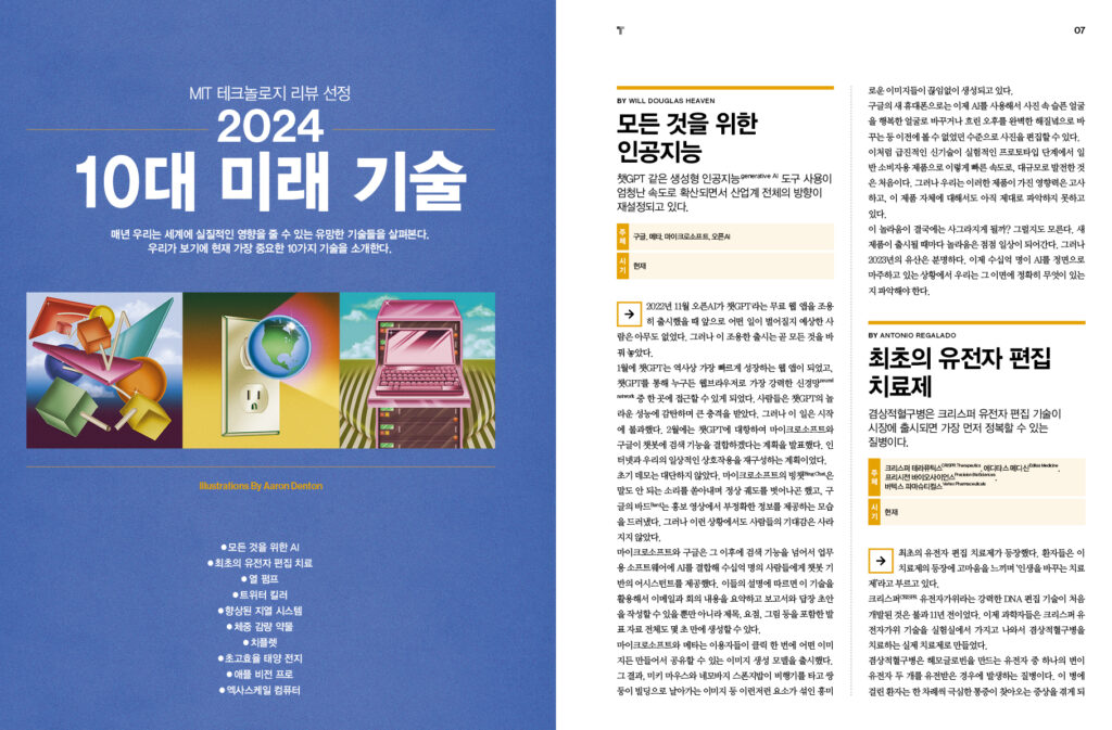 AI의 영향력이 점점 더 커지고 있습니다. 이 기술은 앞으로 세상을 어떻게 변화시킬까요? MIT 테크놀로지 리뷰가 선정한 2024년을 이끌어 갈 10대 미래 기술과 그 트렌드를 확인해 보세요. 새로운 기술과 함께 한 해를 준비하시길 바랍니다.