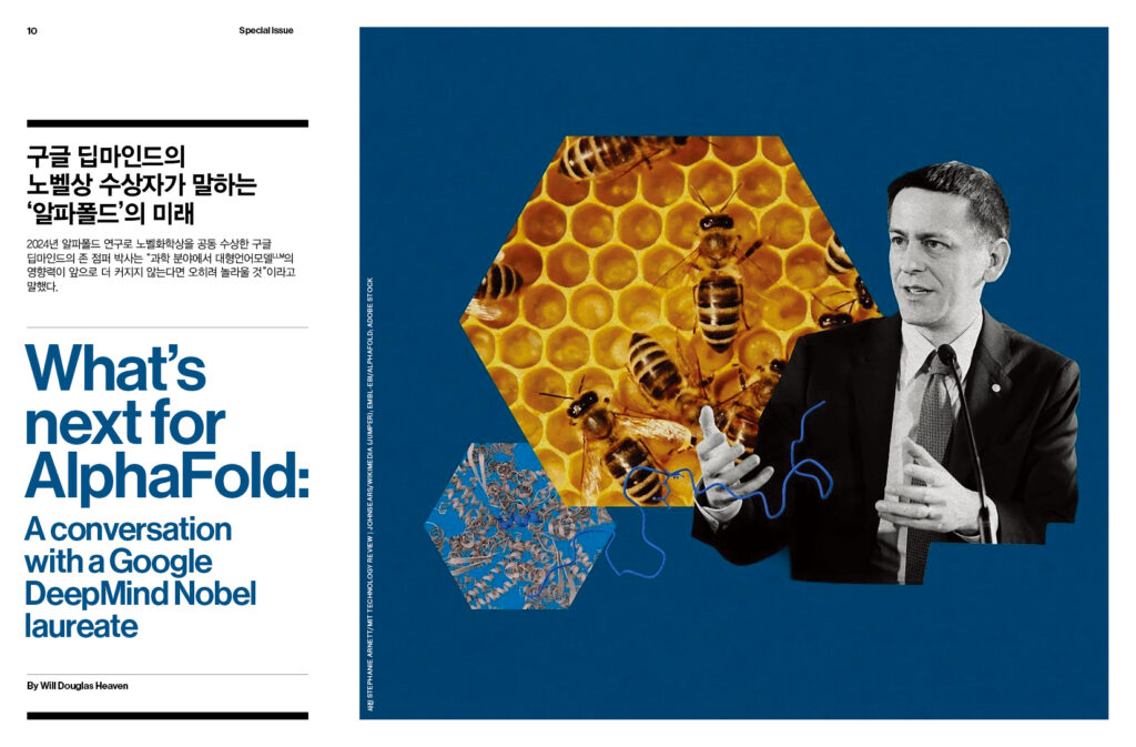Special Issue에서는 AI가 연구실의 데모를 넘어 병원과 공장, 건설 현장과 실험실, 도시 설계와 생명과학 영역에서 어떻게 작동하는지 구체적 사례로 살펴본다. 구글 딥마인드의 알파폴드는 단백질 구조 예측을 통해 과학 연구의 속도를 재정의하며 AI의 산업적·학문적 효용을 상징적으로 보여준다. 이와 함께 환자의 표정을 분석해 통증을 수치화하는 AI, 건설 현장의 추락 위험을 사전에 감지해 산업재해를 줄이려는 생성형 AI, ‘영리한 곰팡이’의 행동 원리에서 도시 설계 해법을 찾는 미국 AI 스타트업, IVF 실험실의 생산성을 높이기 위해 배아 발달 가능성을 예측하는 ‘AI 배아학자’의 등장을 소개한다. 또한 수감자 통화 분석을 통해 ‘예고된 범죄’ 가능성을 포착하려는 시도, AI로 숨겨진 지열 에너지를 찾는 기술, 전쟁 양상을 바꾸는 AI 기술 등 AI 활용의 확장 국면을 다각도로 짚는다.