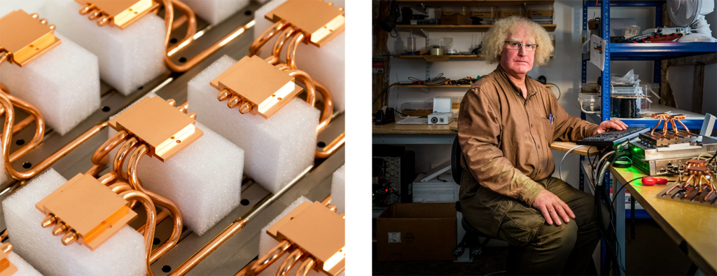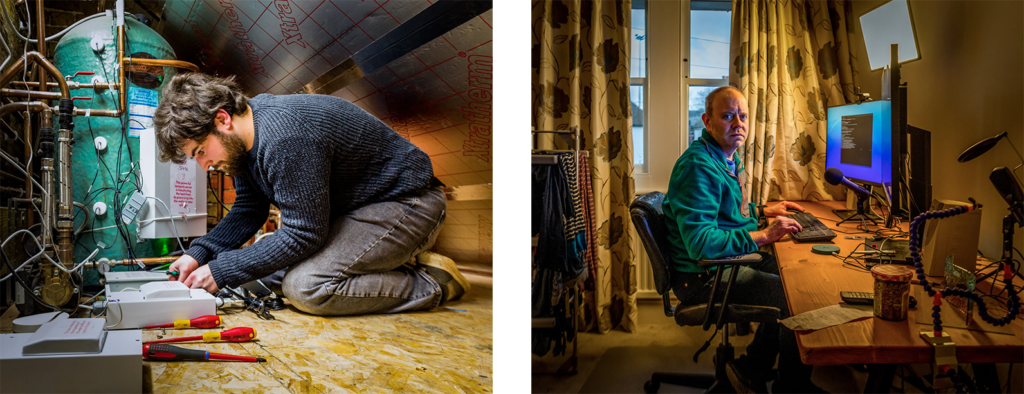 그는 작업장의 문을 열고 90리터 용량의 전기보일러를 보여주며 “이곳은 컴퓨터 프로세서에서 나오는 열을 물이 담긴 실린더로 전달하는 열 전도체의 시제품을 만든 곳”이라고 소개하며 “우리는 첫 번째 테스트를 진행했고 시제품이 의도대로 작동하는 것을 확인했다”고 덧붙였다. 조던은 가정집 보일러에 컴퓨터를 연결하는 혁신적인 클라우드 네트워크를 구축한 영국 스타트업 히타(Heata)의 공동 창립자이자 최고기술책임자(CTO)이다.