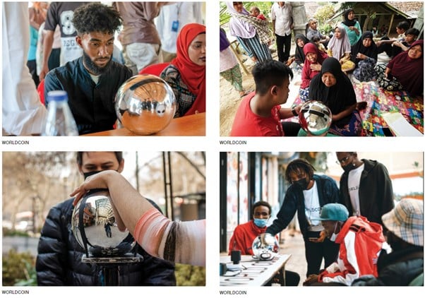 줄 맨 앞쪽에서 암호화폐 스타트업 ‘월드코인(Worldcoin)’의 인도네시아지부 담당자는 주민들의 이메일 주소와 전화번호를 수집하고 있었다. 다른 직원은 미래지향적으로 생긴 구(球) 형태의 금속을 사람 얼굴 가까이에 대며, 홍채를 비롯한 생체인증 데이터를 스캔했다. 지역 공무원도 그 자리에 있었는데, 그는 질서 유지를 위해 사람들에게 순번표를 나눠주고 있었다.